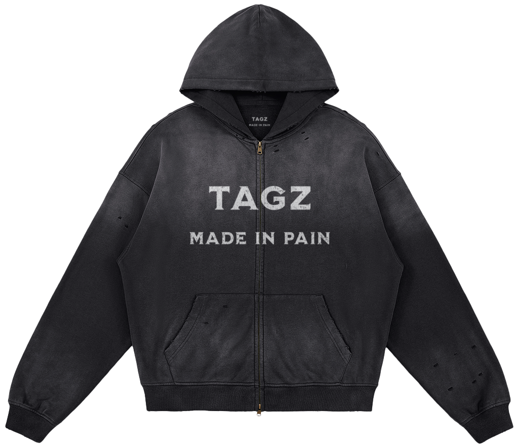 Felpa Nera con zip Collezione TAGZ MADE IN PAIN